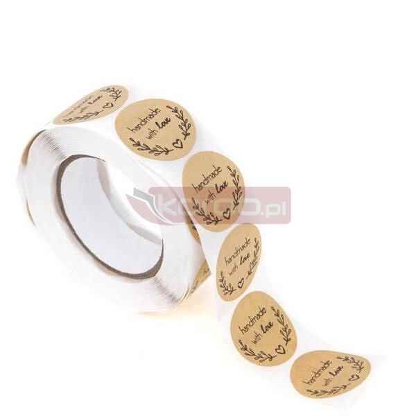 Naklejki na rolce "handmade with love" to urocze i praktyczne etykietki, doskonałe do oznaczenia Twoich rękodzielniczych projektów. Naklejki wykonane są na matowym papierze i mają piękny, kraftowy kolor. Rustykalno-kraftowy styl nadruku fantastycznie komponuje się z rozmaitymi formami rękodzieła.