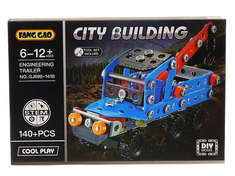 Zestaw 140 metalowych klocków do skręcania, z narzędziami.