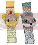 Grzechotanie na całego z parą obłędnie słodziutkich bransoletek! Obie grzechotki zapinane są na rzep, więc bez trudu można je zakładać i zdejmować z dziecięcych rączek. Jedną bransoletkę zdobi koala, a drugą szop, a z tego uroczego duetu można korzystać równocześnie lub oddzielnie, wybierając tę grzechotkę, którą w danym momencie maluszek interesuje się bardziej. Przy główkach zwierzaków znajdują się materiałowe mini metki, które stymulować będą zmysł dotyku bobasa, zachęcając go tym samym do sensorycznego odkrywania świata.