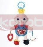 Bobas dla bobasa! Wesoła materiałowa lalka w kształcie małego chłopczyka to zawieszka, która towarzyszyć może dziecku w dowolnym miejscu, zarówno na spacerze, jak i w domowym zaciszu. Zabawka kryje w sobie wiele niespodzianek. Zdobią ją gryzaki oraz grzechotka, a sam materiał, z którego została wykonana odznacza się zróżnicowanymi fakturami, które stymulować będą zmysł dotyku dziecka. Praktyczna zawieszka pozwoli przyczepić lalkę w dowolnym miejscu.