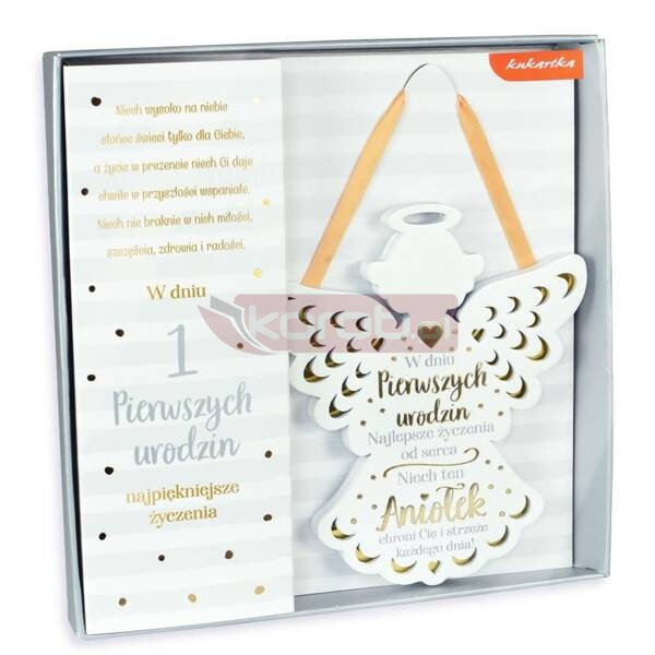 Na tylnej ściance aniołka jest tasiemka do zawieszenia na ścianie.