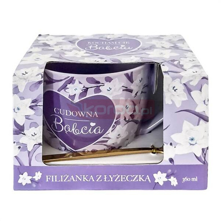 Zestaw filiżanka ze złotą łyżeczką dla babci