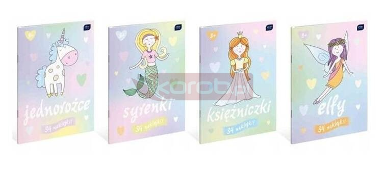 Format: A4. Liczba kartek: 16. Seria czterech książeczek z kolorowankami przeznaczona dla dzieci powyżej 3 lat. Duże naklejki w zestawie. Tytuły dostępne w serii: Jednorożce, Syrenki, Księżniczki, Elfy.
