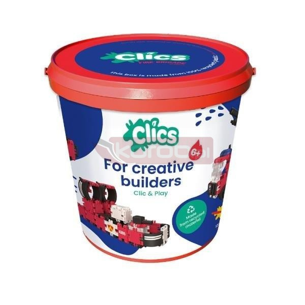 CLICS to edukacyjno-konstrukcyjne klocki dla dzieci od 6 roku życia zapewniające godziny wspaniałej zabawy w budowanie. W opakowaniu znajdziemy 127 elementów klocków, które umożliwiają małym konstruktorom zbudowanie aż ośmiu rodzajów pojazdów Straży Pożarnej. Klocki edukacyjno-konstrukcyjne świetnie sprawdzą się jako prezent dla każdego małego miłośnika budowania. Konstruowanie pojazdów rozwija umiejętności manualne dziecka oraz zdolność logicznego myślenia. Dodatkowo pozytywnie wpływa na rozwój wyobraźni i kreatywności najmłodszych. Wszystkie elementy zestawu zostały umieszczone w praktycznym, plastikowym wiaderku z rączką, dzięki czemu dziecko z łatwością może je przenosić. Cechy produktu: - klocki zwiększają sprawność umysłową, co przekłada się na kreatywność najmłodszych, - pobudzają wyobraźnię oraz pozytywnie wpływają na rozwój dziecka, - świetny prezent dla dzieci uwielbiających budowanie. Zawartość opakowania: - 127 elementów klocków, - 8 planów budowy pojazdów