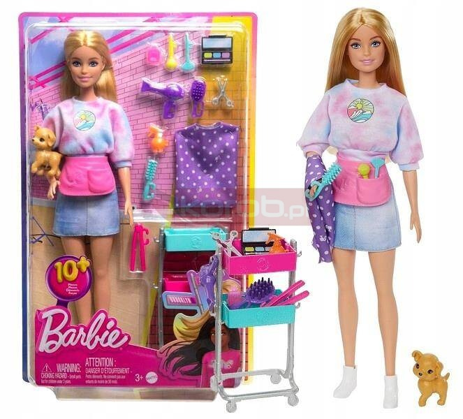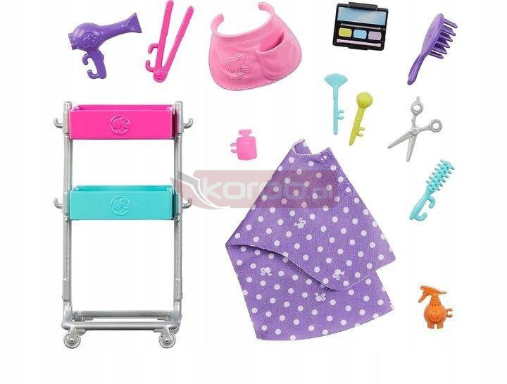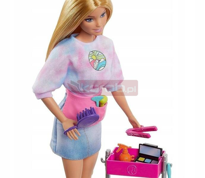 Zestaw z lalką Barbie i akcesoriami jest inspirowany motywem stylistki na planie zdjęciowym, a do tego zachęca do zabawy według własnego scenariusza. Lalka Barbie „Malibu” zajmuje się stylizacją włosów i makijażem z pomocą 14 akcesoriów, takich jak piesek, wózek stylistki, pelerynka fryzjerska, „suszarka” do włosów, szczotka i paletka do makijażu. Niektóre elementy mają uchwyty pasujące do dłoni lalki, aby niesamowita zabawa na planie była jeszcze bardziej realistyczna. Lalka Barbie „Malibu” ma proste blond włosy i modną stylizację z fartuszkiem, w którym może schować swoje przybory. Dzięki tak wielu elementom inspirującym wyobraźnię ten zestaw to doskonały prezent dla dzieci od 3 roku życia, szczególnie tych, które uwielbiają pracę stylisty i zabawę modą.