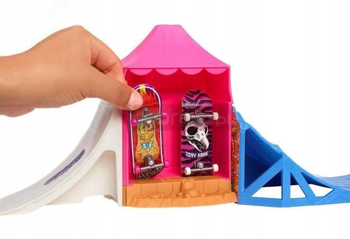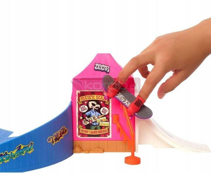 Przeżyj bajeczną jazdę na deskorolce z Hot Wheels Skate Wybierz zestaw Hot Wheels Skate Skatepark Wesołe miasteczko, aby odkryć epicką akcję na każdym kroku: odjechane przeszkody, wyczesany styl i ręcznie aktywowane dźwięki. W zestawie jest w pełni zmontowana wyjątkowa deskorolka do jazdy palcami i zdejmowane buty deskorolkowe, które pomagają nowicjuszom utrzymać palce na miejscu i wyczuć deskę podczas ćwiczenia tricków. Śmigaj po rampie i naciśnij przycisk, aby aktywować muzykę i dźwięki. W zestawie są też poręcze i rampy do dostosowania, wiec możesz szaleć do woli. Połącz ten zestaw z innymi, aby zbudować obszerny skatepark z wieloma przeszkodami i sztuczkami. (Sprzedawane oddzielnie). Zestaw Hot Wheels Skate Skatepark Wesołe miasteczko to doskonały prezent dla małych deskorolkarzy od 5 roku życia.