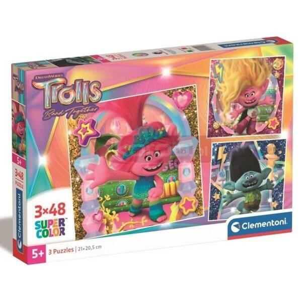 Puzzle Super Color - trzy układanki po 48 el. Wyjątkowe barwy druku uzyskano dzięki wykorzystaniu technologii Super Kolor.