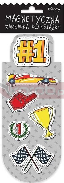 Uniwersalna magnetyczna zakładka do książki, zapakowana w woreczek foliowy z euro zawieszką. Ozdobiona złoceniami.