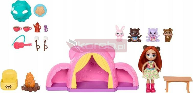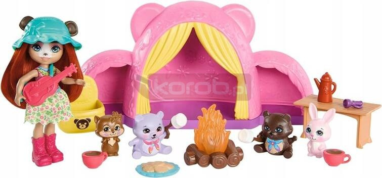 ENCHANTIMALS ZESTAW WYCIECZKA POD NAMIOT lalka miś + 2 figurki zwierzątek HTW71