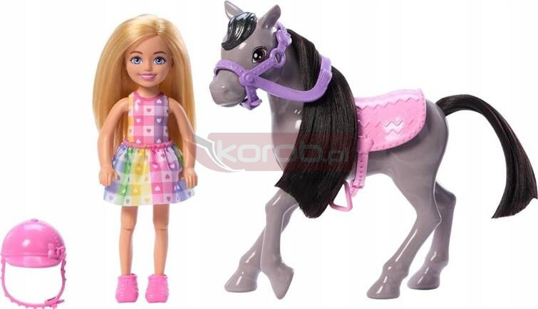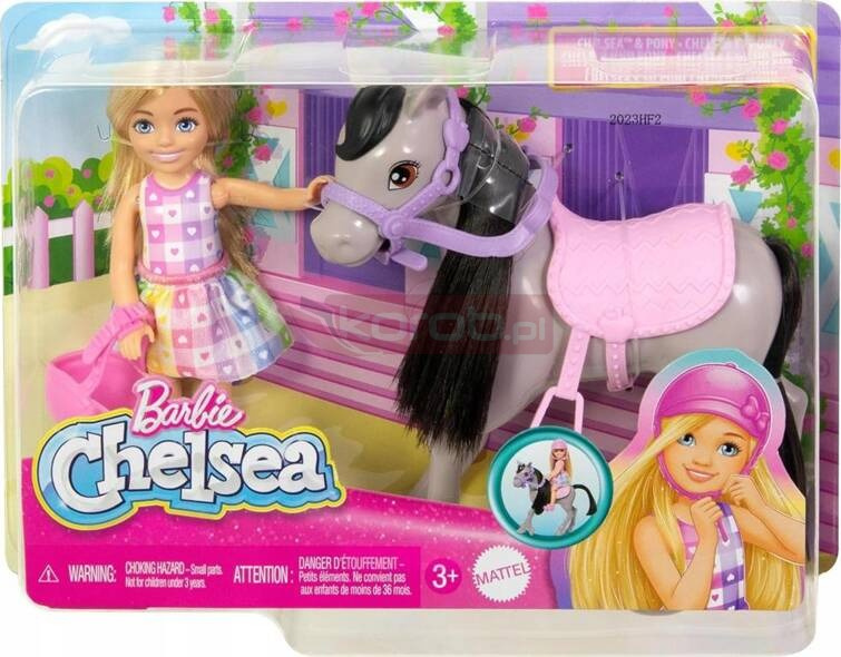 LALKA BARBIE CHELSEA z kucykiem LALKA, KONIK + AKCESORIA HTK29