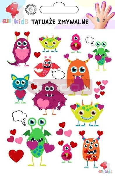 Tatuaże posiadają atest dermatologiczny i zostały wyprodukowane w Polsce. Są w pełnibezpieczne dla skóry. Produkt do użytku pod nadzorem osoby dorosłej i nie powinien być stosowany w wieku poniżej 3 lat.