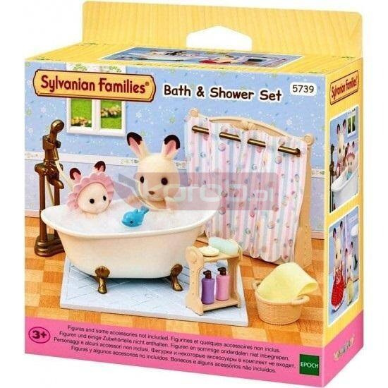 Wannę na nóżkach i wolnostojącą głowicę prysznicową można ustawić w dowolnym miejscu na dołączonej płycie podstawy wyłożonej kafelkami. Dostępna jest również ładna zasłona prysznicowa, którą można przesuwać i zamykać na drążku podczas wchodzenia i wychodzenia z wanny. Wypełnij półkę w łazience wszystkimi ulubionymi mydłami i zabawkami do kąpieli, a urocza czepka prysznicowa zapobiegnie przedostawaniu się wody do oczu!