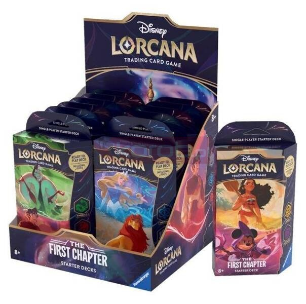 This Box contains 12 pcs of Starter set. To play Disney Lorcana, each player will need a deck of sixty cards. Ready-to-play starter decks contain a preconstructed deck with a specific card list. If youre new to trading card games, or if you want to experience the game with a deck designed and tested by Team Lorcana, this is a good place to start.