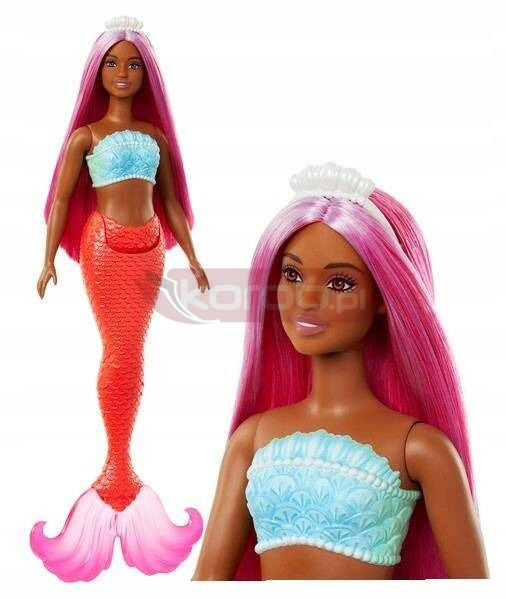 LALKA BARBIE SYRENKA czerwony ogon, ciemnoróżowe włosy HRR04