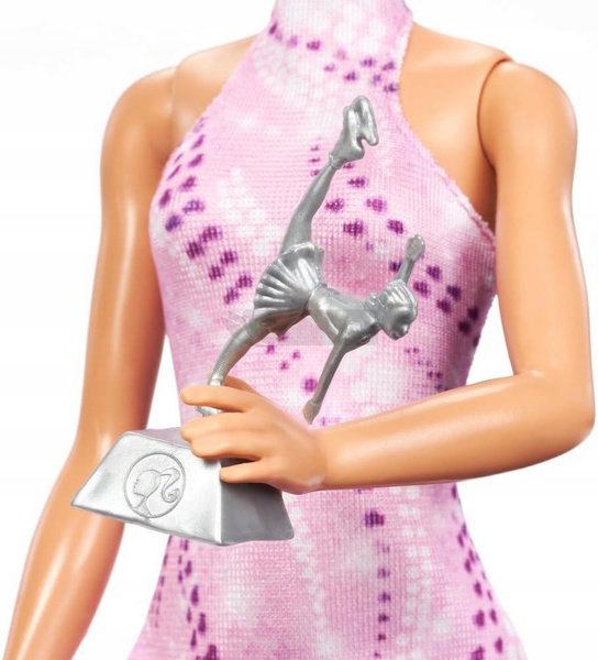 Z lalkami Barbie z linii Kariera dzieci mogą snuć wielkie marzenia i wyobrażać sobie siebie w różnych zawodach. Lalka Barbie Łyżwiarka figurowa jest ubrana w różowy strój ze zdejmowaną sukienką i łyżwami, doskonały na trening oraz zawody. Wśród akcesoriów są bukiet kwiatów i srebrzyste trofeum, które urozmaicają zabawę w odgrywanie ról. Brązowe włosy Barbie są upięte w klasyczny koczek na czubku głowy. Lalka Barbie zachęca do puszczenia wodzy wyobraźni, więc będzie świetnym prezentem dla dzieci od 3 roku życia, zwłaszcza tych, które uwielbiają łyżwiarstwo i inne sporty! Świetny prezent dla fanów Barbie.