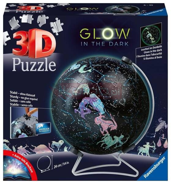 Miłośnicy łamigłówek, którzy interesują się astronomią i astrologią, pokochają tę kulę z puzzli 3D z konstelacjami i znakami zodiaku, które dzięki fluorescencyjnemu materiałowi świecą w ciemności. Niepowtarzalny dekoracyjny produkt z pewnością zachwyci każdego.