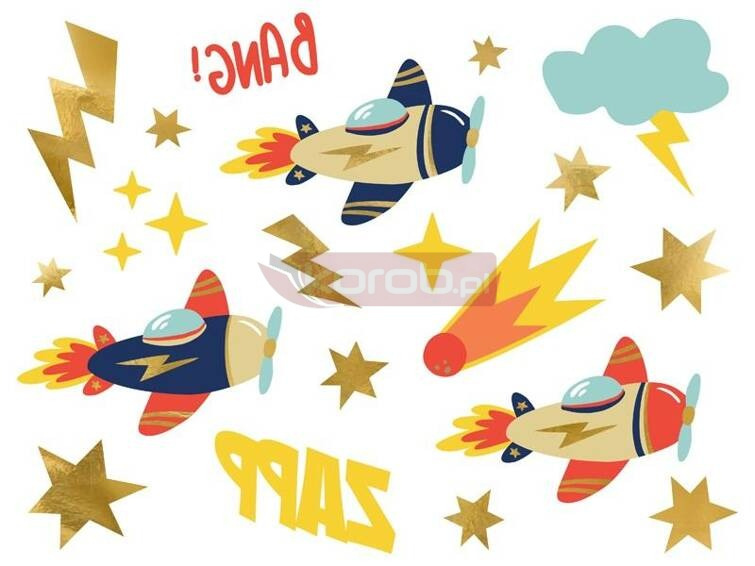 Tatuaże zmywalne Samoloty, mix wzorów i kolorów, zestaw zawiera 11 różnych wzorów.(1 op. / 11 szt.)