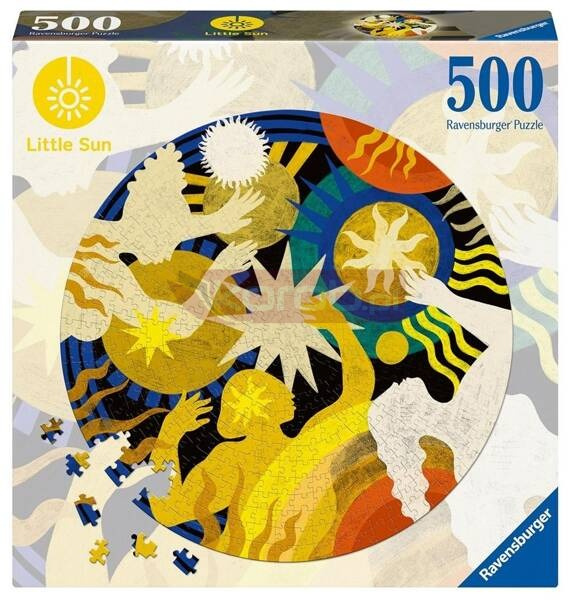 Puzzle 2D: Małe słońce 500 elementów dla dorosłych - po ułożeniu mają kształt koła, w którym zamknięto motyw wielokolorowego obrazka.