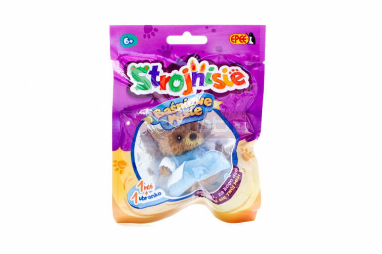 Strojnisie to przesłodkie, elastyczne misie, które można przebierać w różne ubranka. Teraz nowość! Strojnisie w baśniowych stylizacjach. W kolekcji m.in. ubranka Czerwonego Kapturka, Kopciuszka, Małej Syrenki, Kota w Butach, Smoka i wiele innych. W 1-packu znajduje się 1 miś i 1 ubranko.