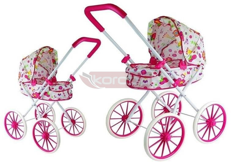 Wózek dla Lalek w kwiatuszki Fantastyczny, duży, zwrotny wózek dla najmłodszych dziewczynek. Nowoczesne, przyjemne dla oka wzornictwo z pewnością zachwyci każdą małą opiekunkę lalek, misiów i innych przytulanek. Połączenie różowych kolorów z delikatnymi kwiatkami stanowi idealny duet. Wózek został wykonany bardzo starannie i dokładnie, co można dostrzec przyglądając się detalom zabawki. Wózeczek opiera się na prostej, lekkiej i przede wszystkim bezpiecznej konstrukcji, która doskonale sprawdzi się podczas codziennych zabaw. Wózeczek dla małej opiekunki jest bardzo komfortowy i zwrotny, prowadzi się w bardzo łatwy i płynny sposób. Czym wyróżnia się ten różowy wózek w kwiatki? Wózek posiada duże, stabilne koła, odpowiadające ze lekkie i wygodne prowadzenie. Max wysokość z rączką: 75 cm Długość gondoli: 47 cm Szerokość (rozstaw kół): 39 cm Wymiar opakowania: 70 x 50 x 20 cm