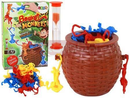 Koszyk Małpek Spadające Małpki Gra Zręcznościowa Zasady zabawy są bardzo proste. Z wszystkich małpek usypujemy stos. Odwracamy klepsydrę i starujemy. Pierwszy gracz łapie za jedną małpkę i nie dotykając rękami pozostałych stara się ułożyć jak najdłuższy łańcuch małpek. Łańcuch układamy aż nie upłynie czas odmierzany przez klepsydrę. Gdy czas minie liczymy małpki i zabawę rozpoczyna kolejny gracz. Wygrywa osoba, która ułoży najdłuższy łańcuch z małpek. Zasady można dowolnie zmieniać, np. aby podnieść poziom trudności można układać łańcuch tylko z małpek w wybranym kolorze albo zrobić zawody, kto w odmierzanym czasie ułoży więcej małpek w koszu. Możliwości jest naprawdę wiele. Koszyk może posłużyć zarówno do zabawy jak i jako pojemnik do przechowywania małpek już po skończonej zabawie. Zręcznościowa gra z małpkami to idealny prezent dla każdego dziecka. Wszyscy wiemy, że maluchy chętnie garną się do rozmaitych zabaw pozwalających zdobyć nowe umiejętności. Zawartość zestawu: - 24 małpki - klepsydra - koszyk - oryginalne opakowanie Wymiary opakowania: 24 cm x 16 cm x 6 cm Posiada certyfikat CE, ponadto jest zgodny z normą EN71. Przeznaczony dla dzieci powyżej 3 roku życia.