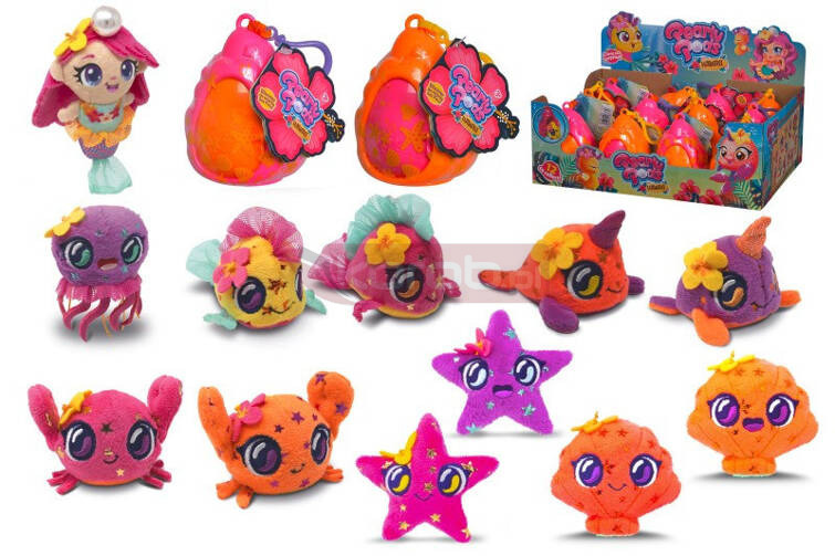 Pluszowe figurki Pearly Pods w nowej hawajskiej odsłonie! Pearly Pods mieszkają w małych, kolorowych muszelkach. Dopiero po otwarciu dowiesz się, która urocza pluszowa figurka jest ukryta w środku. Pluszowe figurki mają wspaniałe jasne kolory i małe błyszczące gwiazdki. Wśród morskich zwierzątek takich jak żółw, meduza, krab i wiele innych, znajdziesz rzadką syrenkę, która we włosach ma błyszczącą perłę.