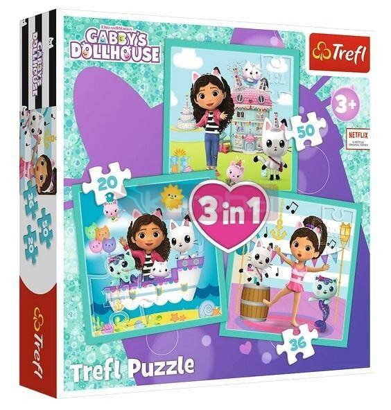 Aktywności Gabby to 3 niezależne układanki dla dzieci, zaprojektowane z myślą o małych fanach przygód bohaterów bajki Koci Domek Gabi. Po ułożeniu puzzli powstaną 3 różne obrazki - największy o wymiarach 200x195 mm. Zróżnicowana liczba elementów pozwala na zabawę zarówno młodszym, jak i nieco starszym dzieciom.