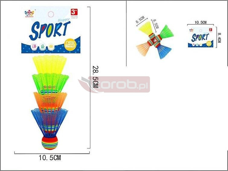 Zestaw 4 lotek do badmintona, palstikowe, kolorowe; 28,5x10,5x8,5cm,