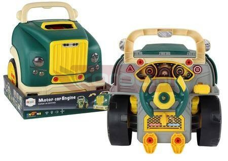Warsztat Silnik Ciężarówka Do Rozkręcania Zestaw Majsterkowicza Zielony Zestaw majsterkowicza dla dzieci to zielona ciężarówka, która jest nie tylko zabawką, ale także narzędziem do rozwijania zdolności mechanicznych i kreatywności u najmłodszych. Ciężarówka posiada wiele funkcji mechanicznych, które umożliwiają dziecku rozkręcanie i składanie nowych części pojazdu, co pobudza wyobraźnię i rozwija umiejętności manualne. To nie tylko pojazd, ale także mobilny warsztat, który wciągnie każdego małego majsterkowicza w fascynujący świat napraw i konstrukcji. Główną cechą tego zestawu są jego liczne funkcje mechaniczne, które pozwalają na interaktywną naukę i zabawę. Dziecko może eksperymentować, rozkręcając i składając różne części pojazdu, co rozwija jego zdolności manualne i logiczne myślenie. Otwierana maska i odkręcane koła umożliwiają dogłębne zrozumienie budowy ciężarówki i eksplorację wnętrza pojazdu. Główny panel ciężarówki to prawdziwa strefa rozrywki i interakcji. Kierownica, która obraca się w prawo i lewo, zapewnia autentyczne wrażenia z jazdy, podczas gdy klakson dodaje dodatkowej zabawy i realizmu. Przycisk awaryjny z efektami świetlnymi i dźwiękowymi umożliwia udawanie sytuacji kryzysowych, które dziecko może odtwarzać w swojej wyobraźni. Przycisk start-stop uruchamia realistyczne dźwięki pojazdu, podczas gdy przełącznik skrzyni biegów pozwala na symulację zmiany kierunku jazdy. Nie zapomniano również o efektach dźwiękowych i świetlnych, które dodają jeszcze więcej atrakcyjności do zabawy i umożliwiają dziecku eksplorację zmysłów. Cały zestaw umieszczony jest na dwóch dużych kołach, dzięki którym dziecko może łatwo przenieść swój warsztat z jednego miejsca do drugiego, co sprzyja mobilności i kreatywności. To nie tylko zabawka - to narzędzie do nauki, rozwijania umiejętności i wyobraźni, które zapewni godziny fascynującej zabawy dla każdego małego majsterkowicza! Zestaw majsterkowicza jest skręcony, aby odkręcić elementy należy użyć narzędzi dołączonych do zestawu. Zawartość zestawu: - Warsztat ciężarówka - narzędzia - instrukcja obsługi - oryginalne opakowanie Wymiary warsztatu: 35 cm x 33 cm x 37 cm Wymiary opakowania: 35 cm x 35 cm x 8 cm Efekty świetlne i dźwiękowe zasilane są trzema bateriami 1.5V AA, które nie są elementem zestawu. Posiada certyfikat CE, ponadto jest zgodny z normą EN71. Przeznaczony dla dzieci powyżej 3 roku życia.