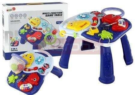 Stolik Edukacyjny 2w1 Zwierzęta Morskie Pianinko Zegar Kosz Piłki Stolik Edukacyjny 2 w 1 z uroczym morskim motywem, który wzbudzi zachwyt Twojego malucha i zapewni mu niezapomnianą zabawę! Ten wyjątkowy stolik został zaprojektowany z myślą o rozwijaniu zdolności i zainteresowań dziecka, oferując bogactwo funkcji edukacyjnych w atrakcyjnej formie. Stolik jest w eleganckim kolorze granatowym, który doskonale komponuje się z morskimi akcentami. Na jego powierzchni znajduje się wiele interaktywnych elementów, takich jak czerwony konik wodny z pianinkiem, który zachęca do eksploracji dźwięków, ośmiorniczka z koralikami, zapewniająca stymulującą aktywność sensoryczną, malutka książeczka z motywami rybek, zegarek oraz zestaw klocków w trzech różnych kształtach, rozwijający zdolności poznawcze i manualne malucha. Dodatkowo, aby wzbogacić tematyczny charakter stolika, umieszczono na nim uroczego marynarza, który wprowadza morski klimat do zabawy. Ale to nie wszystko! Stolik w każdej chwili może stać się ekscytującą tarczą do koszykówki. W zestawie znajdziesz malutki kosz i trzy piłeczki, które po zamocowaniu na marynarzu umożliwią Twojemu dziecku trening precyzji i zręczności. Stolik Edukacyjny 2 w 1 z morskim motywem to nie tylko doskonała zabawa, ale także sposób na wszechstronny rozwój Twojego malucha. Dzięki niemu nauka staje się przyjemnością, a codzienne chwile spędzone przy stole wypełnione są radością i odkryciami! Stolik zasilany jest na baterie 3x 1.5V AAA, które nie są elementem zestawu. Wymiary stolika: 32cm x 25,5cm x 23cm Wymiary opakowania: 39cm x 32,5cm x 8,5cm Posiada certyfikat CE, ponadto jest zgodny z normą EN71. Przeznaczony dla dzieci powyżej 18 miesiąca życia.