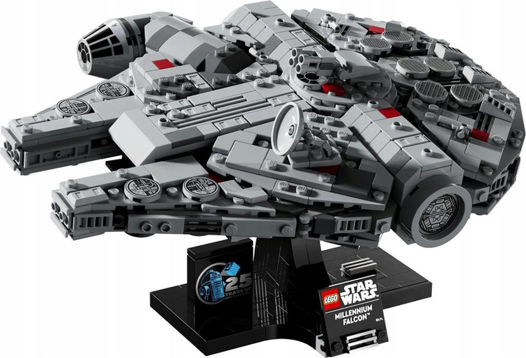 Klasyczna saga Gwiezdnych Wojen™ może trwać w najlepsze w Twoim salonie dzięki kolekcjonerskiemu modelowi statku kosmicznego LEGO® Star Wars Sokół Millennium (75375). Skup się jak Jedi i odtwórz autentyczne szczegóły tego kultowego statku z filmu Gwiezdne Wojny: Nowa nadzieja. Zaprezentuj swoje dzieło na podstawce, która pokazuje Sokoła Millennium w locie z dynamicznej perspektywy. Dodaj tabliczkę i klocek z okazji 25. rocznicy LEGO Star Wars, aby stworzyć dekorację, która z pewnością wzbudzi nostalgiczne wspomnienia. Ten pojazd z Gwiezdnych Wojen należy do kolekcji średniej wielkości statków kosmicznych LEGO Star Wars. To świetny upominek dla Ciebie lub prezent dla innych fanów Gwiezdnych Wojen i kolekcjonerów pamiątek. Ten wyjątkowy zestaw LEGO Star Wars dla dorosłych stanowi wyzwanie konstrukcyjne dla każdego. Twoje wrażenia z budowania dodatkowo urozmaici aplikacja LEGO Builder, w której można powiększać i obracać modele w 3D, śledzić swoje postępy i zapisywać wszystkie swoje zestawy w jednym miejscu.