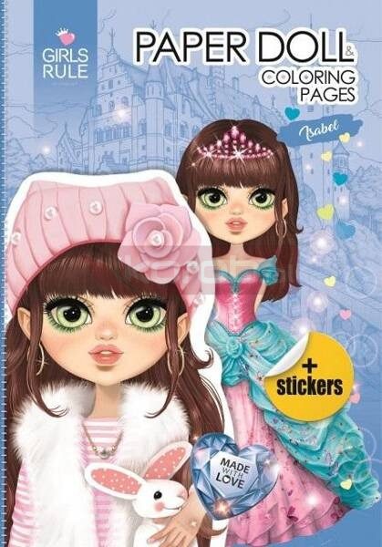 Papierowa lalka do zabawy - Isabel. W środku znajdziesz wiele różnych strojów, w które możesz ją przebrać. Pokoloruj ją, a następnie wytnij z książeczki, potem ubierz - zaginając specjalnie zaznaczone krawędzie. Stroje mają wyraźne oznaczenia pokazujące, gdzie wyciąć, aby ubrania pasowały na lalkę. Wykorzystaj także naklejki, które znajdziesz w środku. Baw się opowiadając najróżniejsze historie. Możesz przebrać lalkę i zacząć zabawę od nowa.