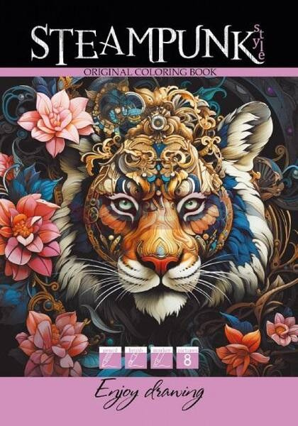 Kolorowanka A4 8 obrazków Steampunk Tygrys