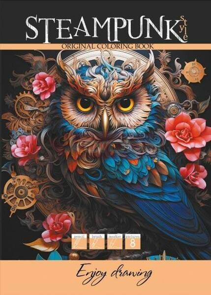 Kolorowanka A4 8 obrazków Steampunk Sowa