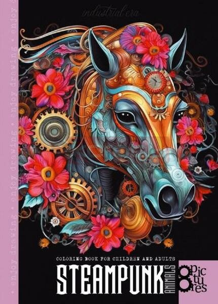 Kolorowanka przeznaczona jest dla dzieci starszych, nastolatków i dorosłych. W środku znajduje się 8 ilustracji zwierząt w steampunkowym stylu. Pokoloruj każdą stronę tak jak podpowie Ci wyobraźnia. Kolorowanka w formacie A4. Możesz użyć kredek, pisaków bądź pędzli.