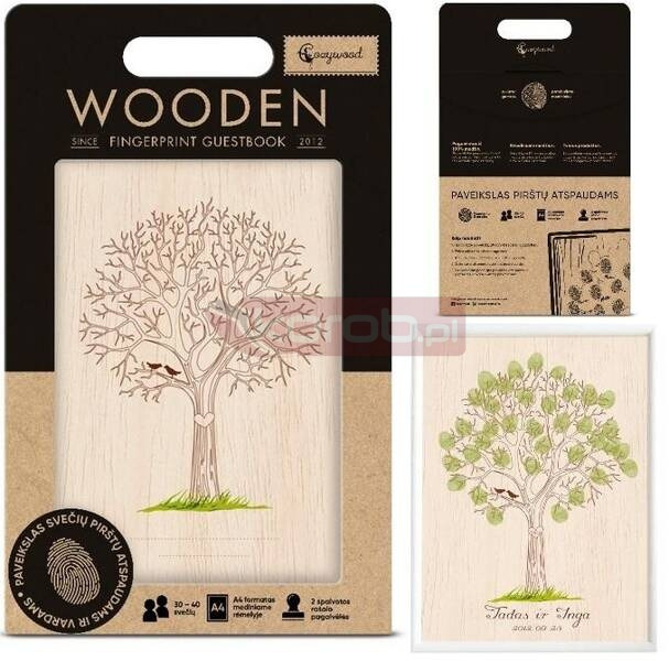 Księga gości na przyjęcie urodzinowe/imieninowe w formie drewnianego obrazu oprawionego w białą ramkę, na który goście złożą swoje odciski palców, tworząc dzięki temu niezapomnianą pamiątkę dla jubilata/solenizanta. Do zestawu dołączone są 2 tusze w kolorach żółtym i niebieskim. Tusz w łatwy sposób można zmyć z palców. Rekomendowana jest dla 30-40 gości. Instrukcja obsługi: 1. Rozpakuj obrazek oraz tusze, 2. Dotknij wybrany tusz swoim palcem, 3. Umieść odcisk palca na drewnianym obrazie, 4. Przy swoim odcisku możesz złożyć swój podpis, 5. Zachęć pozostałych gości do zabawy, 6. Powstanie niezapomniana pamiątka do powieszenia na ścianie.