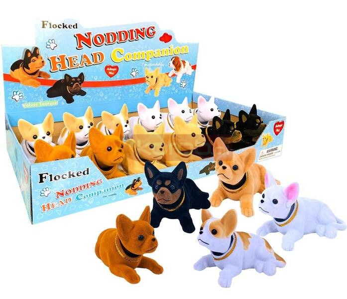 Piesek z ruszającą się głową pokryty materiałem - floką.