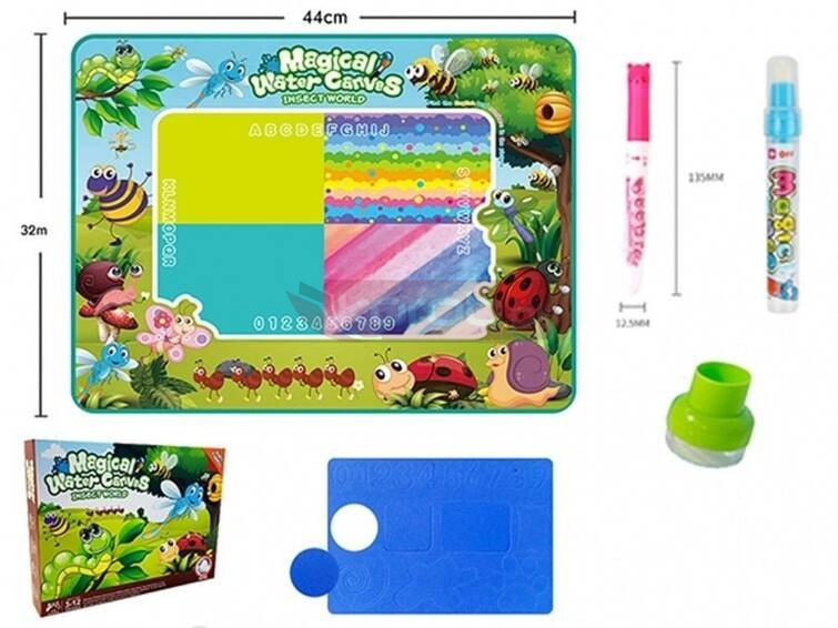 Mata do kolorowania wodnym pisakiem owady 44x32cm Mata do wielokrotnego użycia, uczy dziecko kreatywności. Sposób użycia: