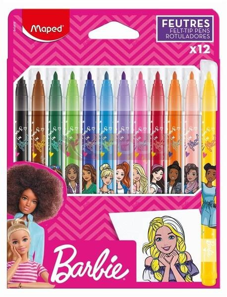 Flamastry z kolekcji Barbie, szeroka gama kolorystyczna zaprojektowana do codziennego użytku w szkole lub w domu, intensywne barwy.