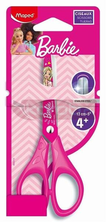 Nożyczki szkolne z kolekcji Barbie z lakierowanymi ostrzami ze stali nierdzewnej.