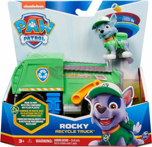Rocky z Psiego Patrolu jest w drodze w swoim pojeździe ratunkowym. Dołącz do Rocky'ego podczas pełnych akcji misji z jego śmieciarką. Gdy nadejdą kłopoty, posadź Rocky'ego (figurka w zestawie) na fotelu kierowcy i ruszaj na ratunek dzięki działającym kołom, podnośnikowi widłowemu, który porusza się w górę i w dół, oraz otwieranej tylnej klapie. Dzięki autentycznym detalom i realistycznym funkcjom ukochany ekspert od recyklingu z Psiego Patrolu i jego ciężarówka ożywiają wszystkie emocje związane z serialem. Rocky i jego pojazd są produkowane w sposób ekologiczny i są wykonane w co najmniej 80, z plastiku pochodzącego z recyklingu. Połącz siły z resztą szczeniaków i ich pojazdami ratunkowymi (każdy sprzedawany osobno) i pomóż opanować sytuację w Zatoce Przygód. Aby rozegrać jeszcze więcej zabawnych i ekscytujących misji inspirowanych Psim Patrolem, zbierz wszystkie zabawki z filmu Psi Patrol, takie jak niesamowity Lotniskowiec dowodzenia, a także wszystkie specjalne zabawki z serii Psi Patrol dla dziewczynek i chłopców, takie jak figurki i zestawy Wielkie Szczenięta, Wodny Patrol i Big Truck Pups (każdy sprzedawany osobno). Ciesz się niekończącymi się przygodami ze swoim ulubionym bohaterem w jego charakterystycznym pojeździe.