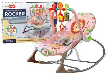 Bujaczek Krzesełko Leżaczek Dla Niemowlaka Wibracja Dźwięk Bujak Różowy Lew Bujaczek leżaczek dla niemowlaka z uroczym motywem przyjaznego lwa. Nasz bujaczek to nie tylko wygodne miejsce do wypoczynku dla malucha, ale także interaktywna strefa zabawy, która stymuluje jego rozwój. Różowe poszycie bujaczka ozdobione jest uroczym motywem lwa oraz różnych owadów i roślin, co sprawia, że każda chwila spędzona w nim jest pełna przygód i radości. Do bujaczka dołączony jest pałąk z obrotowymi zawieszkami przedstawiającymi urocze zwierzątka: lwa, i żyrafę. Pociągnięcie za pomarańczowe kółeczko przywieszone do lwa powoduje radosne dźwięki melodyjki, co dodatkowo zachęca malucha do interakcji i eksploracji. Bujaczek można w łatwy sposób przekształcić w leżaczek (obniżając oparcie), bądź w stabilne krzesełko (rozkładając nóżkę przymocowaną pod bujaczkiem). Bujaczek posiada regulowane trzypunktowe zapięcie, które zapewnia maksymalne bezpieczeństwo i komfort podczas użytkowania. Dzięki konstrukcji antypoślizgowej oraz możliwości regulacji pałąka, bujaczek jest stabilny i łatwy w ustawieniu. Dodatkowo, wyposażony jest w funkcję wibracji, która pomaga dziecku w zaśnięciu, co zdecydowanie jest jego największym atutem. Dzięki temu maluch może zrelaksować się i spokojnie się zdrzemnąć. Odkryj nasz bujaczek leżaczek dla niemowlaka - doskonałe połączenie wygody, bezpieczeństwa i zabawy, które sprawi, że każda chwila spędzona z maluchem będzie pełna radości i wspomnień. Bujaczek zasilany jest na baterie 1x LR20, które nie są elementem zestawu. Wisząca zabawka lisek jest zasilana na baterie 3x AG13, które są elementem zestawu. Wymiary bujaczka: 66cm x 47,5cm x 43cm Wymiary pałąka: 41cm x 37cm x 3cm Wymiary opakowania: 53,5cm x 38,5cm x 8,5cm Posiada certyfikat CE, ponadto jest zgodny z normą EN71. Przeznaczony dla dzieci od pierwszych miesięcy życia.