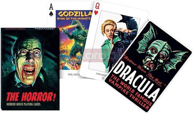Karty do gry z oryginalnymi awersami przedstawiającymi plakaty klasyków kina z gatunku horrorów. Talia składa się z 54 plastikowanych kart o wymiarach 63 x 88 mm. Wyroby wiedeńskiej fabryki Ferd. Piatnik & Sohne od 1824 roku urzekają bogactwem wzorów i perfekcją wykonania. Jakość i tradycja!
