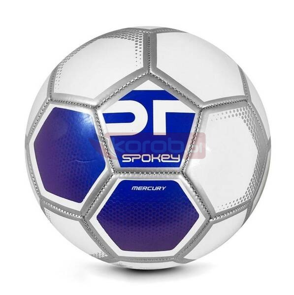 Spokey MERCURY to wysokiej jakości piłka nożna wykonana z PVC (termoplastycznego elastomeru poliuretanowego). Jej panele zostały zszyte maszynowo, co zapewnia pewność i wytrzymałość łączenia. Model ten jest skomponowany z paneli o klasycznym, sześciokątnym kształcie. Dopracowany wyróżnia ją na tle przydomowych i szkolnych orlikach oraz trawiastych boisk.