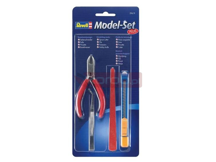 Zestaw narzędzi dla modelarza. Zestaw zawiera: cążki pilniczek pincetę nożyk Specyfikacja Numer katalogowy:REV-29619 Producent: Revell Wymiary: 270x120x15 Grupa wiekowa: 8+