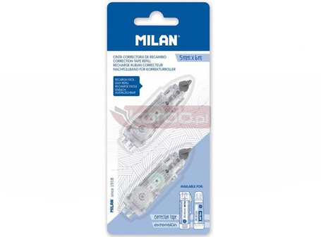 2 wymienne taśmy korektorujące pasujące do korektorów w taśmie: cylindrycznych (1301925, 1301140, 1301140CD,) i Extension (1303925). Korekty na wszystkich rodzajach papieru. Nie pozostawia śladów na kserokopiach. Rozmiar taśmy: szerokość 5 mm x długość 6 m.