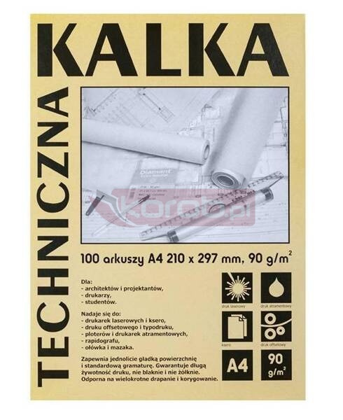 - Kalka kreślarska do kreślenia ołówkiem, tuszem i mazakiem