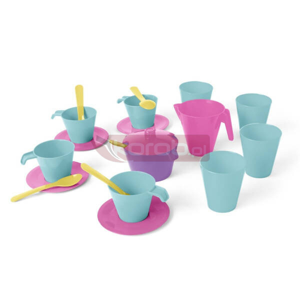 Zestaw naczyń Party Time spodoba się każdemu miłośnikowi zabaw w gotowanie i organizowanie przyjęć i będzie doskonałym uzupełnieniem dziecięcej kuchni. Zestaw składa się z 20 elementów: dzbanka, cukiernicy z pokrywką, 4 kubków, 4 filiżanek, 4 spodeczków i 5 łyżeczek. Poszczególne elementy zestawu są w kolorze różowym, fioletowym i miętowym. Całość jest starannie wykończona i bezpieczna w użytkowaniu naczynia są dopuszczone do kontaktu z żywnością, można używać ich w kuchence mikrofalowej i myć w zmywarce.