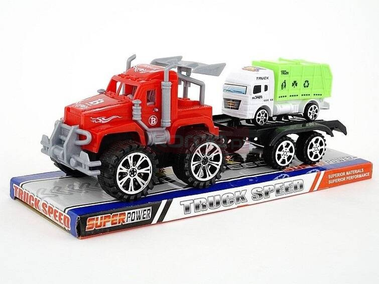 Auto z lawetą i autem, napęd na koło zam; 36x14x13cm, PVC.