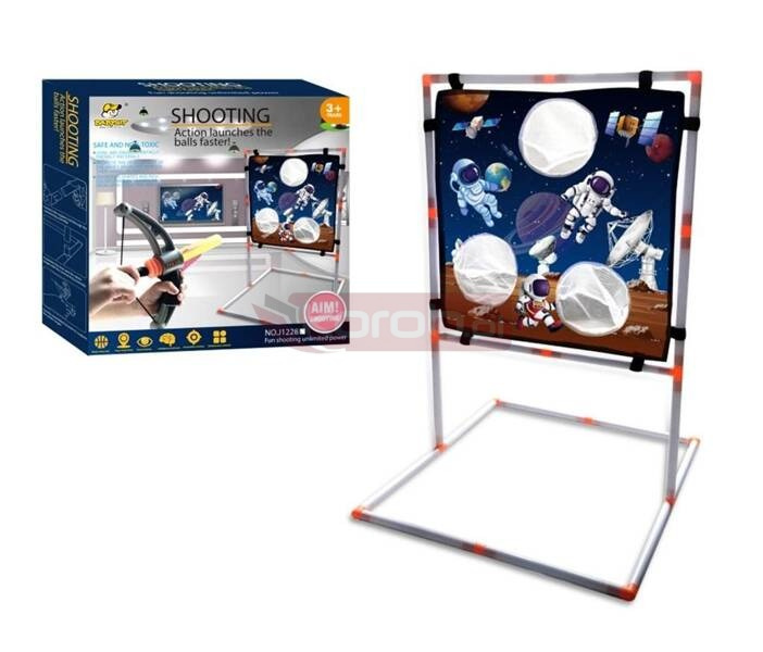 Plastikowa zabawka kusza w zestawie z tarczą z kieszeniami, woreczkami, 3 piłeczkami i rakietą do strzelania. Załaduj kuszę i strzelaj! Ćwicz celność i trafiaj do kieszonek w tarczy. Dzieci również mogą korzystać z zabawki poprzez rzucanie do kieszonek tarczy kolorowymi woreczkami. W zestawie łącznie znajduje się 46 części. Produkt zapakowany w kartonowe opakowanie. Zabawka dla dzieci od 3 lat. Podane wymiary stanowią wymiar opakowania.